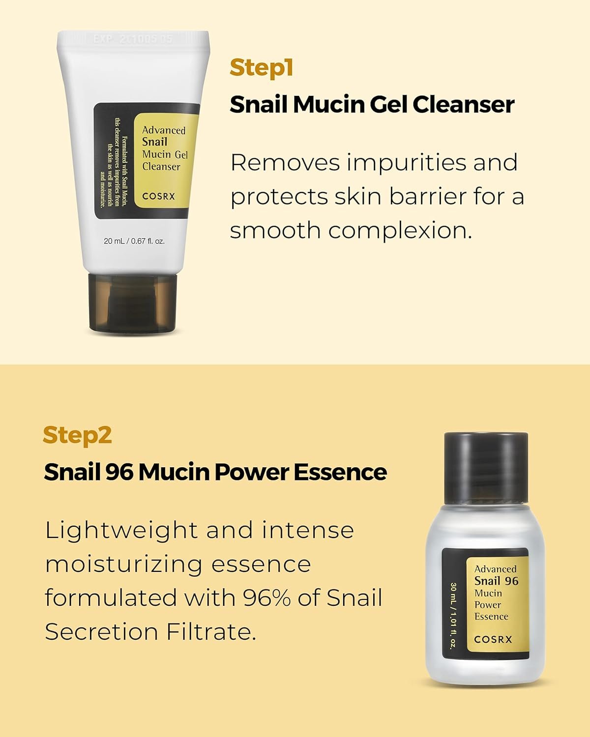 NEVER LOOK TIRED AGAIN. GET THAT PLUMP SKIN, FULL OF NOURISHMENT, IN 4 STEPS! HYPER-CONCENTRATED, SNAIL MUCIN ENRICHED FOR DRY SKIN AND DARK SPOTS TO MAKE IT MORE YOUTHFUL AND RADIANT.